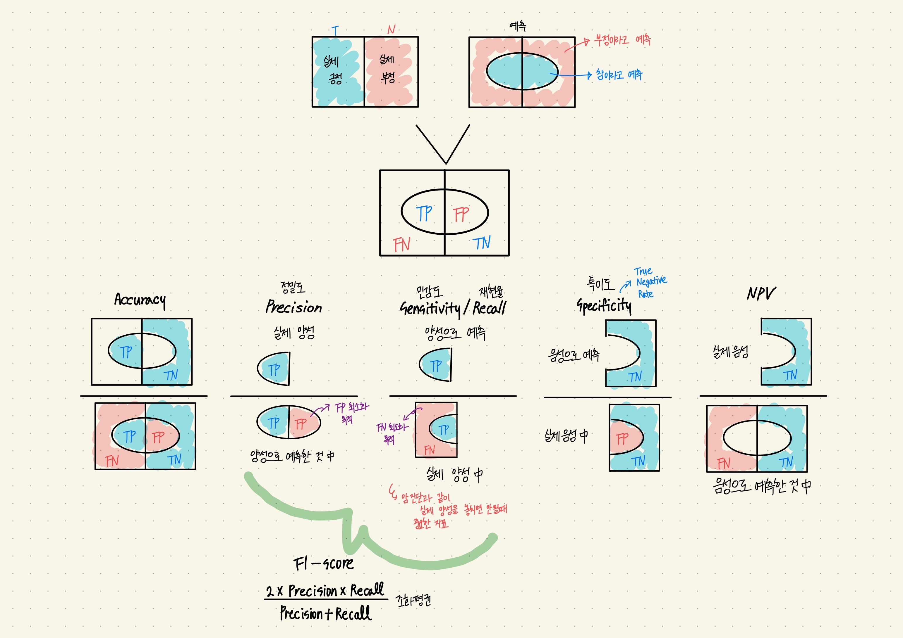 오늘은 머신러닝 모델 평가에서 가장 중요한 지표들인 Precision, Recall, 그리고 F1-score에 대해 알아보려고 합니다. 머신러닝 모델을 만들었다면, 그 성능이 얼마나 좋은지 평가해야 하는데요. "좋은 모델"이란 과연 무엇일까요? 단순히 정확도가 높다고 해서 좋은 모델일까요?예를 들어, 암 진단 모델에서는 실제 암환자를 놓치는 것과 정상인을 암환자로 잘못 진단하는 것 중 어느 것이 더 위험할까요? 이런 다양한 상황을 제대로 평가하기 위해서는 여러 가지 평가 지표들을 이해해야 합니다.이러한 평가 지표들의 기초가 되는 것이 바로 혼동행렬(Confusion Matrix)인데요 혼동행렬(Confusion Matrix)은 기계가 문제를 푸는 과정에서 얼마나 헷갈려하고 있는지, 혼란(confuse)을..